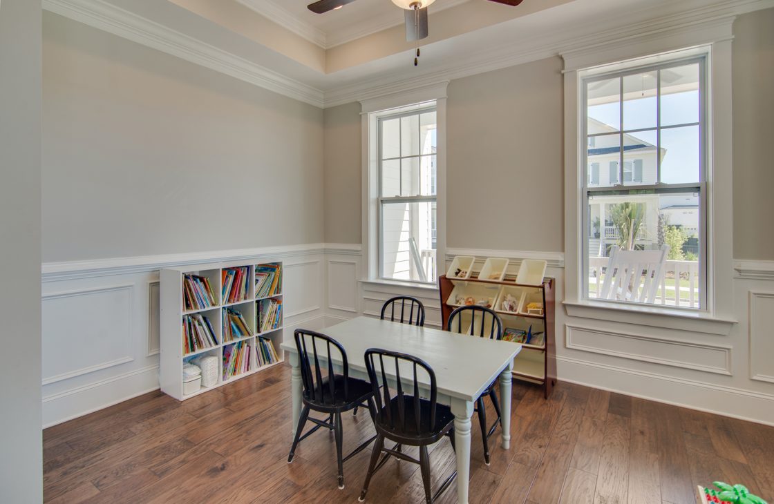 Downstairs, overlooking the front porch, is an additional bedroom with adjoining bath. The front room can easily be utilized as a playroom, study, or office. This home was thoughtfully built with growth in mind.