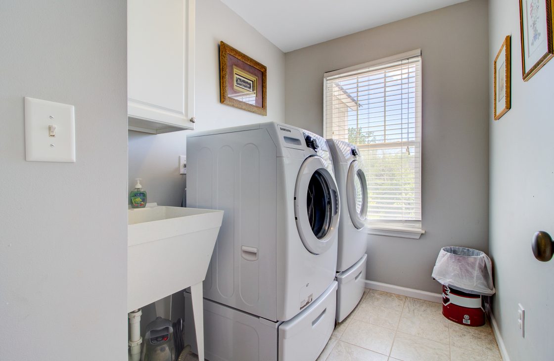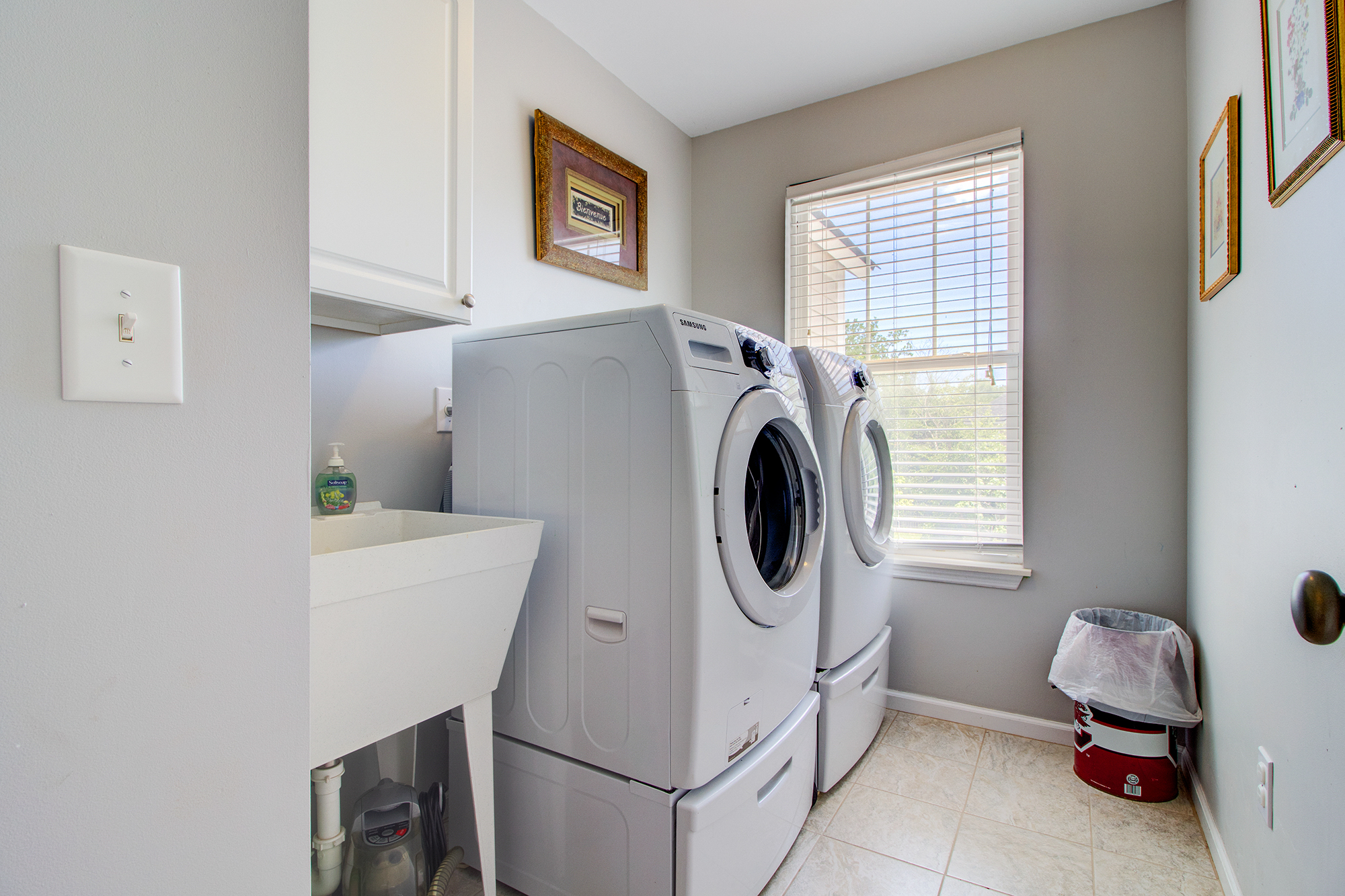 Laundry day is a breeze! Conveniently located upstairs, you can easily tackle the week’s laundry in the spacious room equipped with a sink and plenty of storage.