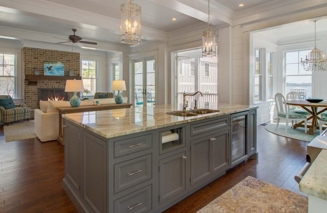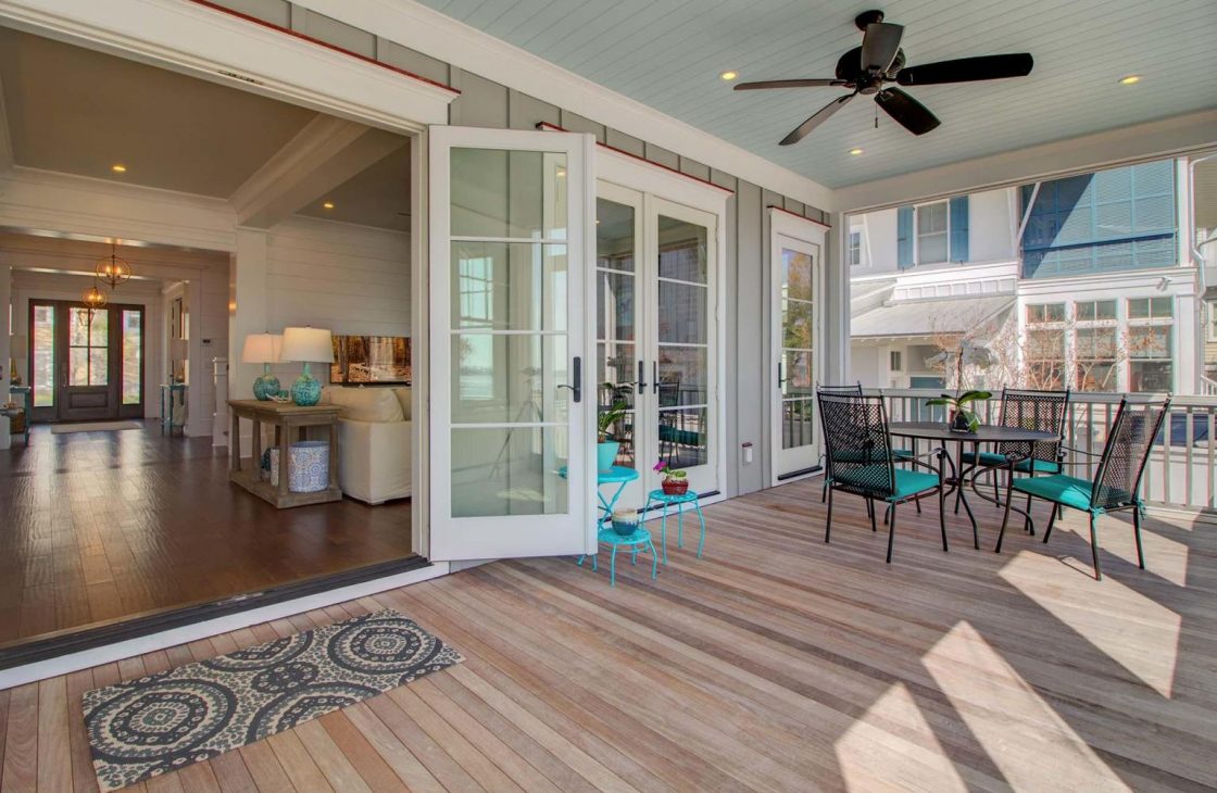 The spacious screened-in porch off the family room gives guests a place to mingle while enjoying the beautiful Lowcountry sunsets.