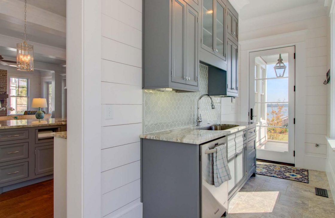 A scullery located right behind the kitchen allows for easy clean up, not seen by guests.