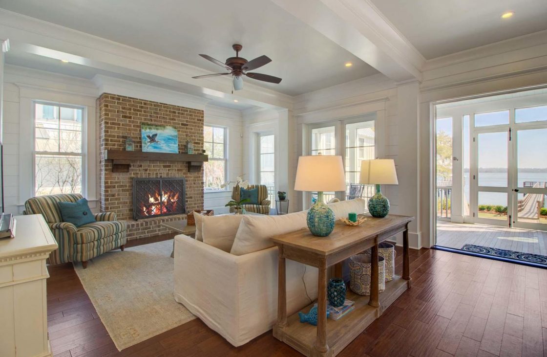 Tranquility abounds in the outdoor living spaces which capture the beauty of the Lowcountry and waterfront living. Enjoy any of the multiple porches, or relax with a glass of wine while sitting around the built in brick fire pit. The professionally designed landscape includes a tranquil fountain and four custom copper lanterns.