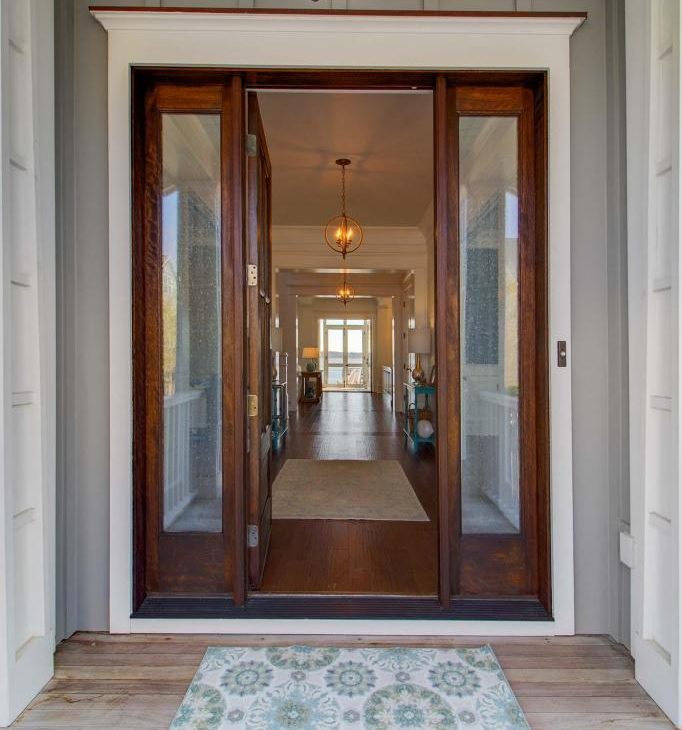 The large mahogany front door greets you as you enter and is illuminated by gas lanterns.