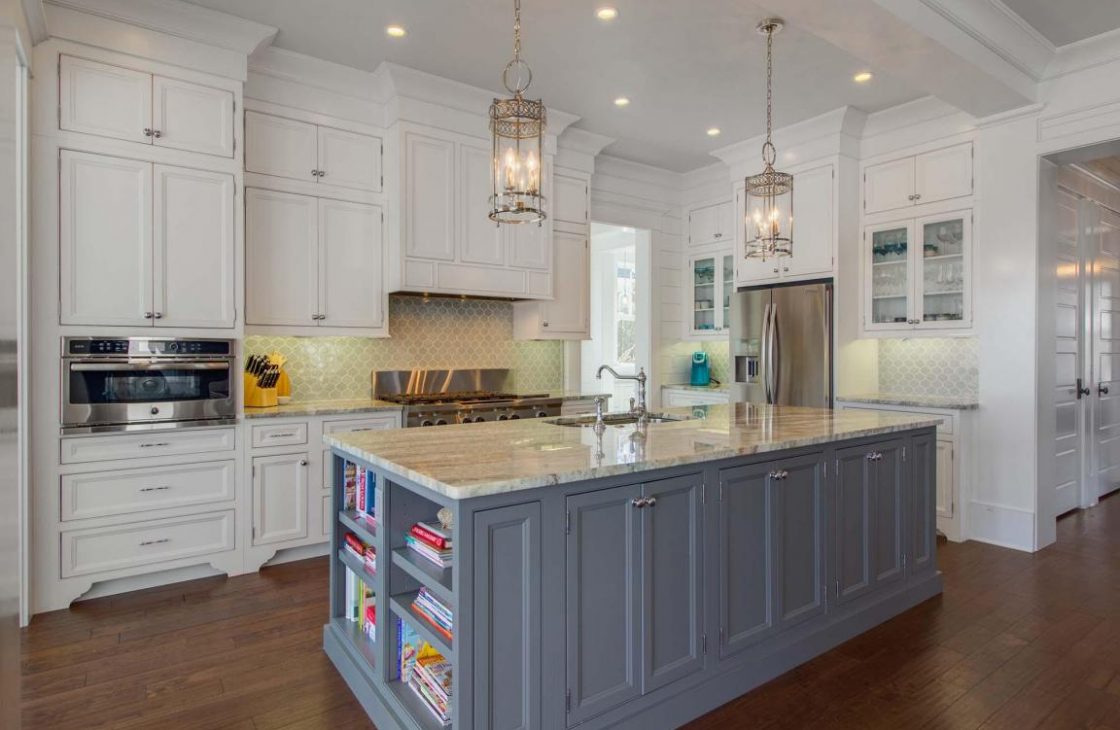 The kitchen is a true chef’s dream, equipped with an oversize island, granite countertops, Walker Zanger backsplash, and state of the art appliances.