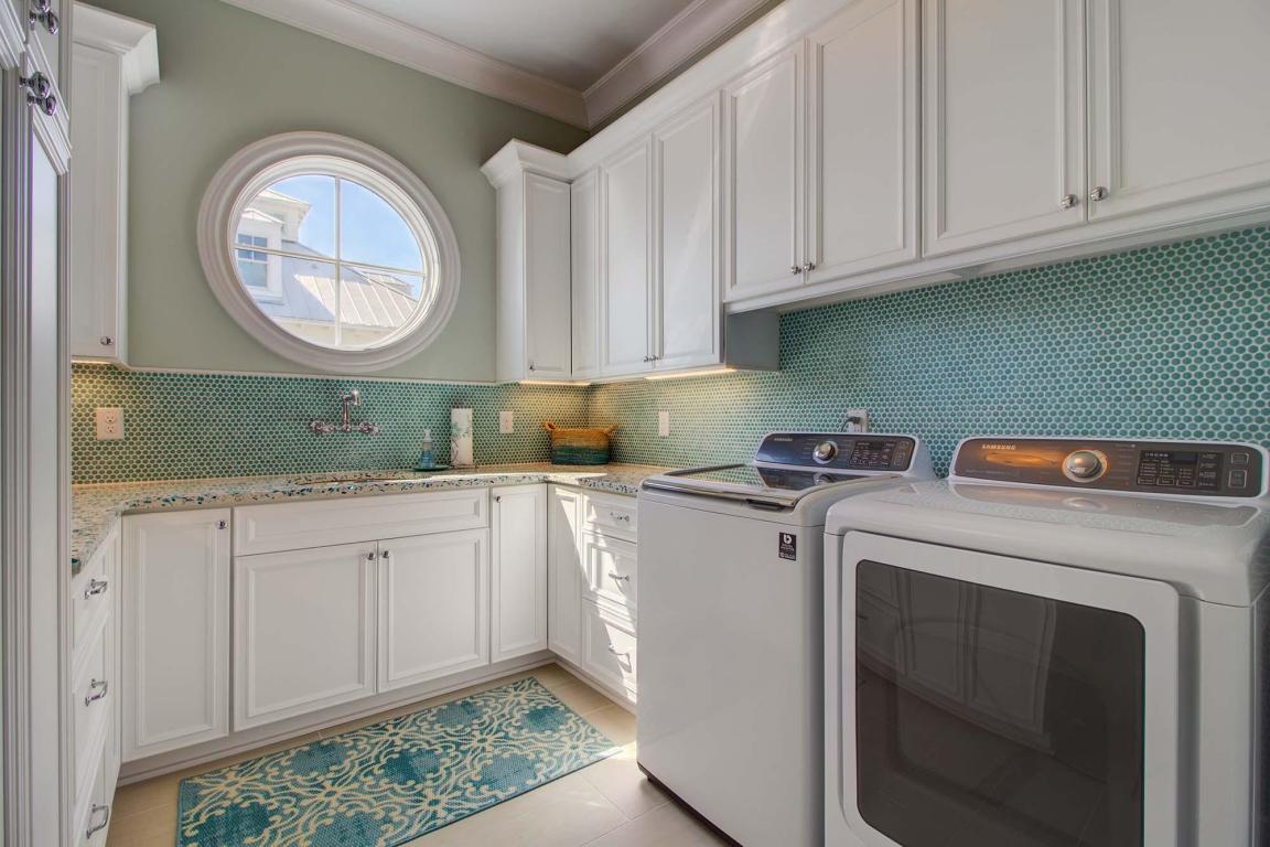 Let’s not forget the amazing laundry room with Vetrazzo countertops, penny round backsplash, and an abundance of cabinetry for storage.