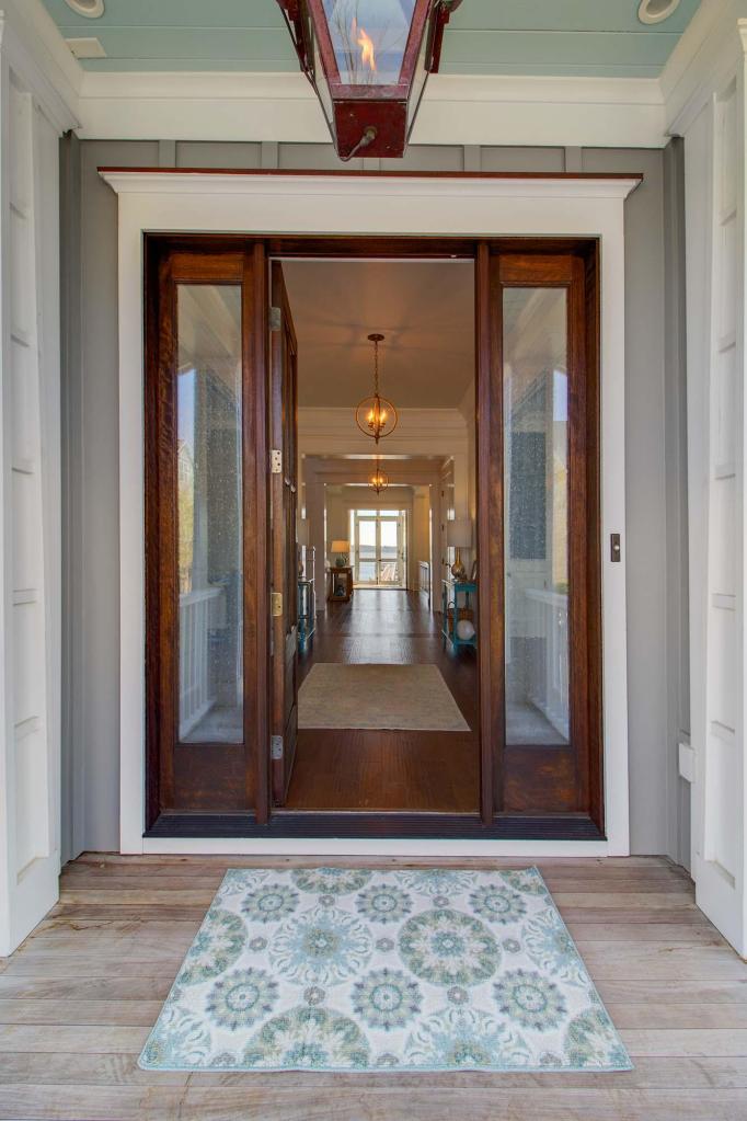 The large mahogany front door greets you as you enter and is illuminated by gas lanterns.