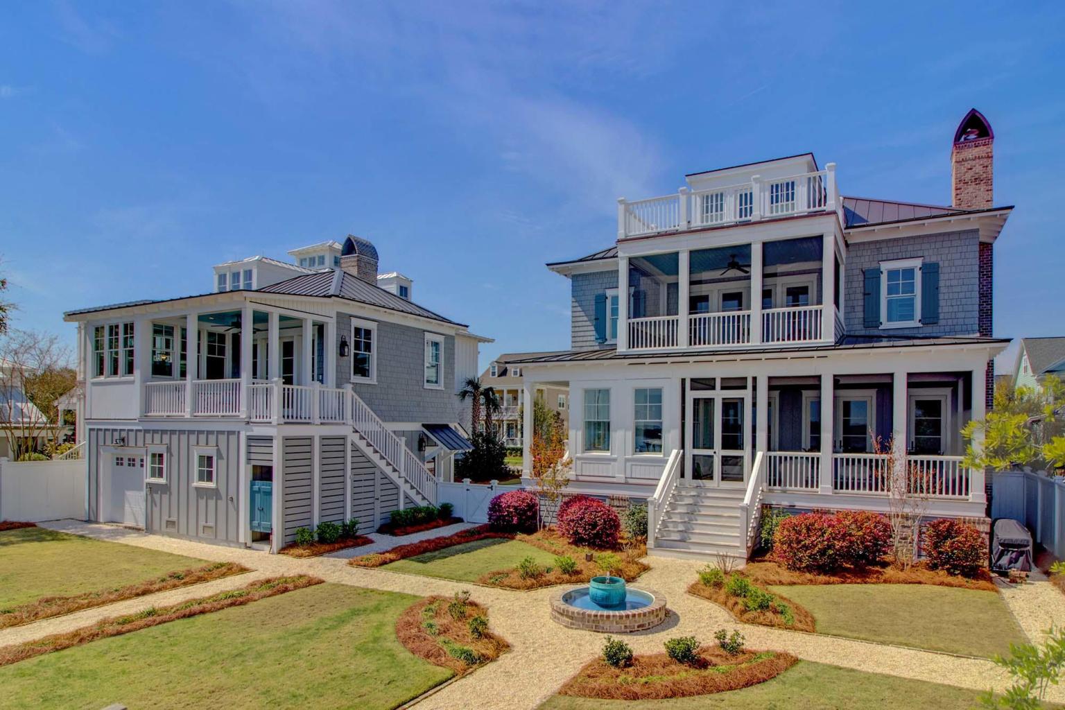 Tranquility abounds in the outdoor living spaces which capture the beauty of the Lowcountry and waterfront living. Enjoy any of the multiple porches, or relax with a glass of wine while sitting around the built in brick fire pit. The professionally designed landscape includes a tranquil fountain and four custom copper lanterns.